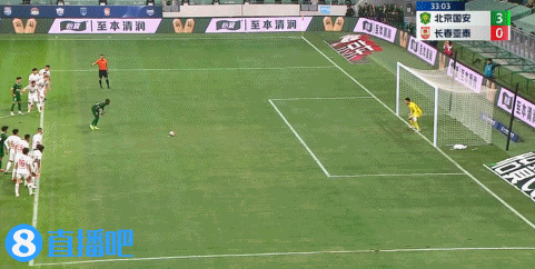 第33分钟,法比奥主罚点球打球门左下,王智峰判断错方向!北京国安3-0长春亚泰↓