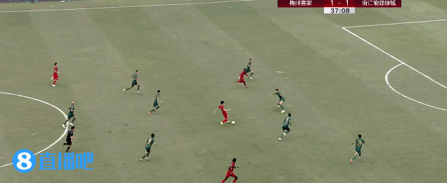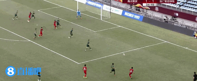 第9分钟,梅州迅速扳平比分!禁区左侧吉森低平球斜传,右侧敦比亚高速前插包抄得手!梅州1-1绿城!↓