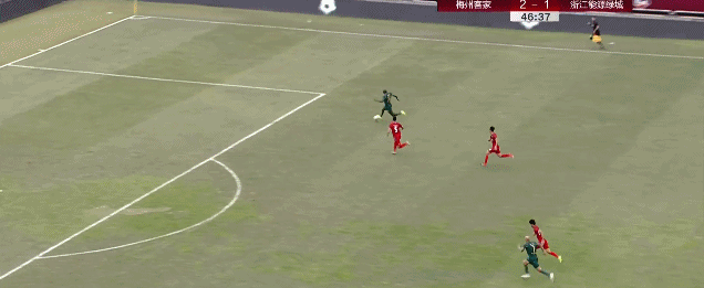 半场结束前,绿城把比分扳平!右路穆谢奎前插形成单刀,抽射破网!绿城2-2梅州!↓