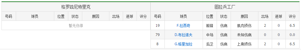 6. 双方历史上有4次的交手记录,图拉兵工厂取得2平2负,处于绝对下风。球队糟糕的客场成绩加上往绩的劣势,本场客场很难给抢分欲望强烈的格罗兹尼特里克制造麻烦,此战或许只能乖乖献上3分。