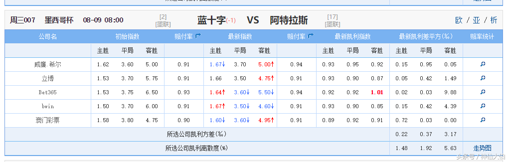 主流博彩公司意见比较统一,主胜抬高,平,主负下降,凯利平走势趋于一致,但客负凯利较高