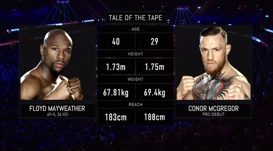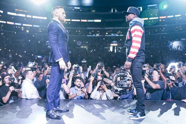 格斗迷讯 北京时间8月27日上午,横跨WBC、WBA、WBO和IBF四大组织、5个级别,49战49胜的不败世界拳王的梅威瑟(Floyd Mayweather),将面对UFC最为炙手可热的明星康纳·麦克格雷戈(Conor McGregor)的挑战。“嘴炮”康纳·麦克格雷戈是UFC历史上首位双料金腰带,也是MMA界出场费最高的选手。这场较量是继2015年梅威瑟VS帕奎奥(Manny Pacquiao)世纪大战后最具轰动性的格斗盛宴,预计将产生最少6亿美元的比赛收益,其中一半收益将被梅威瑟和康纳瓜分。