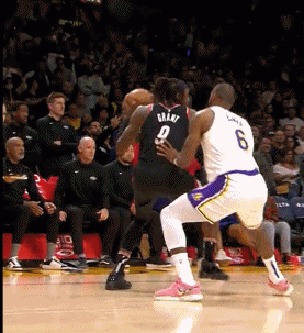 第三节开拓者格兰特拿下9分,湖人詹姆斯拿下9分,第三节结束开拓者75-82落后湖人