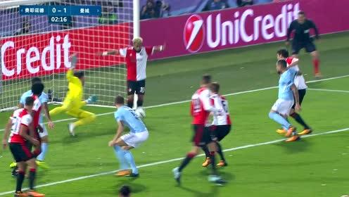 第6分钟,沃克右路传中,热苏斯的头球被博特辛在门线前解围。第9分钟,席尔瓦的直塞最后被琼斯解围。第9分钟,凯尔-沃克右路传中到前点,阿圭罗包抄的垫射得手,费耶诺德0-2曼城!
