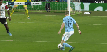 第64分钟,曼城前场发动反击,德布劳内禁区线上暴力远射直奔远角,皮球擦着立柱划过!费耶诺德逃过一劫。