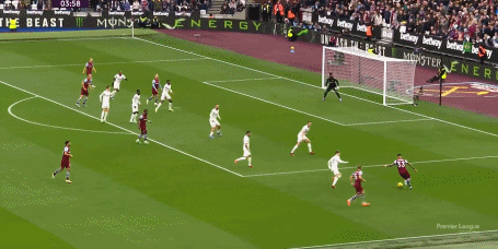 第69分钟,西汉姆联中场挑传,鲍文胸部停球获得了单刀的机会,他在禁区内的抽射被达洛特飞身封堵。第83分钟,曼联将球吊入禁区,B费在小禁区前获得机会,但祖马及时解围将球踢出底线。