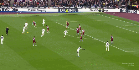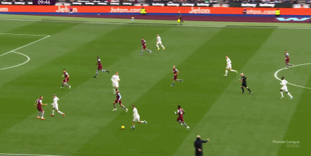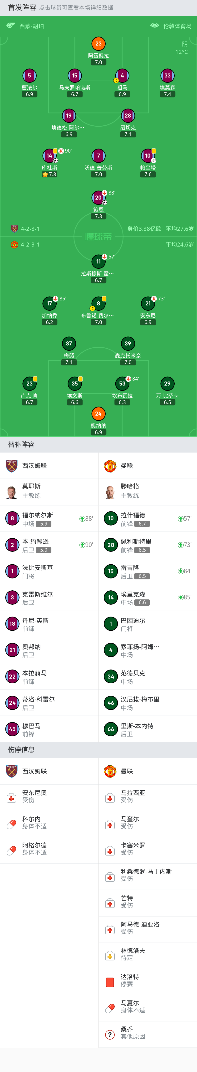第31分钟,西汉姆联禁区右侧下底传中,库杜斯头球攻门被奥纳纳抱住。第40分钟,霍伊伦在拼抢中也被对手打中了面部。上半场结束,曼联暂时领先。
