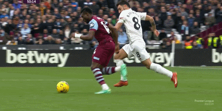 第7分钟,西汉姆联的鲍文在禁区左侧接到队友直塞,一脚低射力量不大,奥纳纳将球抱住。第10分钟,西汉姆联左侧角球开到禁区,中路的头球攻门顶在队友身上变线,奥纳纳侧身将球封出。