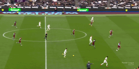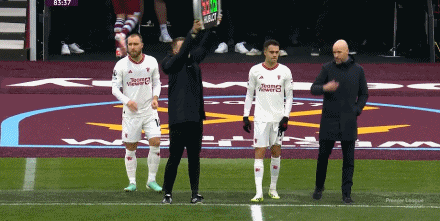 下半场易边再战,西汉姆联更换了门将,法比安斯基换下了阿雷奥拉。第48分钟,马奎尔回传失误被断,埃莫森带球杀入禁区左侧,可惜一脚抽射打高。第49分钟,B费前场左侧长传找到禁区右侧的加纳乔,后者内切一步左脚抽射,法比安斯基扑救不及,曼联2-0西汉姆联。