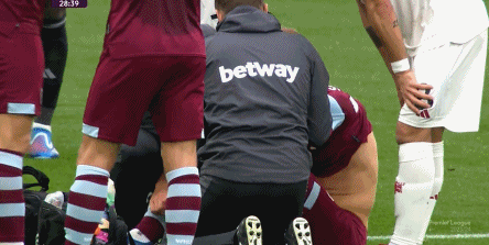 第28分钟,绍切克与队友相撞后出现受伤状况,接受队医治疗