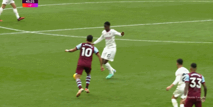第10分钟,卢克-肖与加纳乔配合后传中变线被没收
