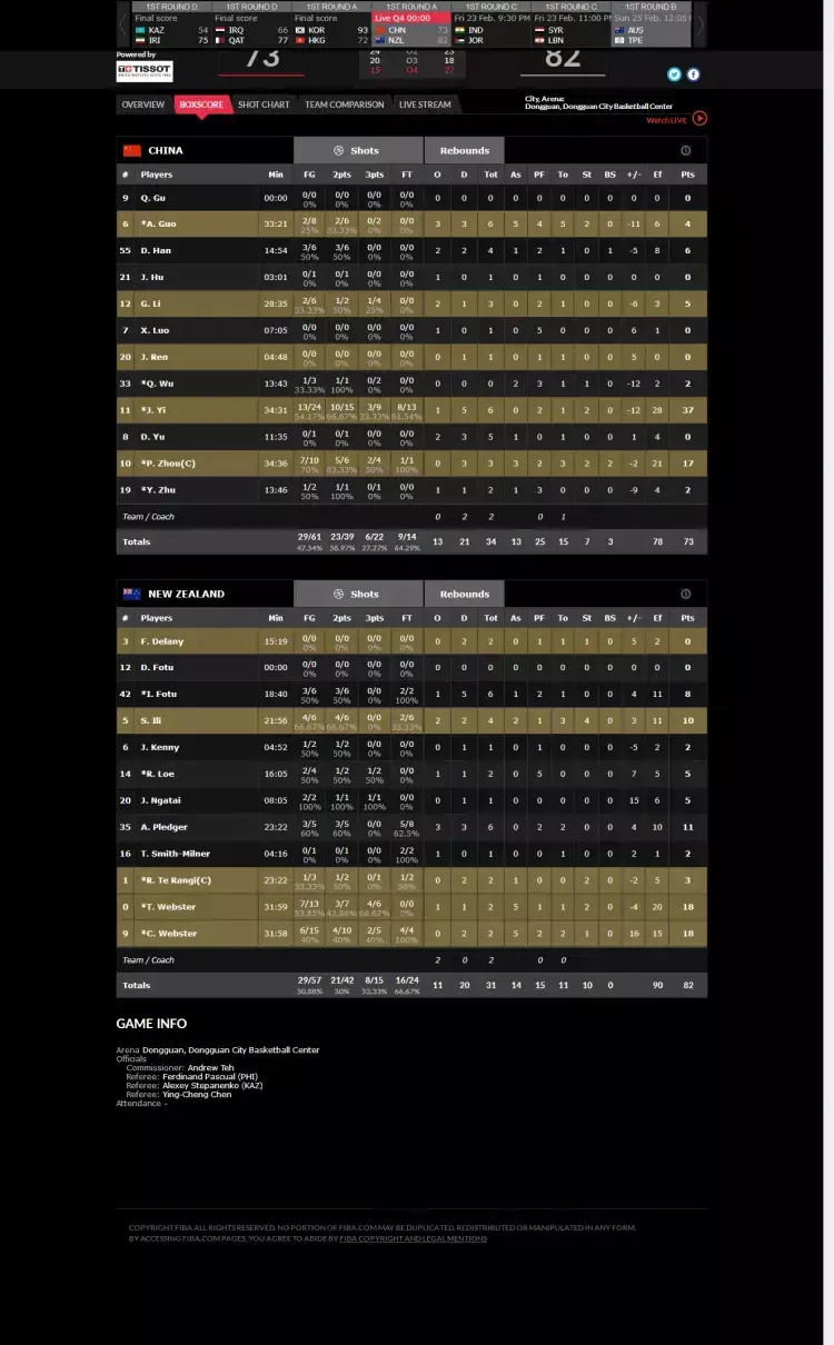 新西兰队数据:科瑞-韦伯斯特18分5助攻;泰-韦伯斯特18分5助攻;亚历克斯-普莱格11分6篮板;谢伊-伊里10分4篮板。