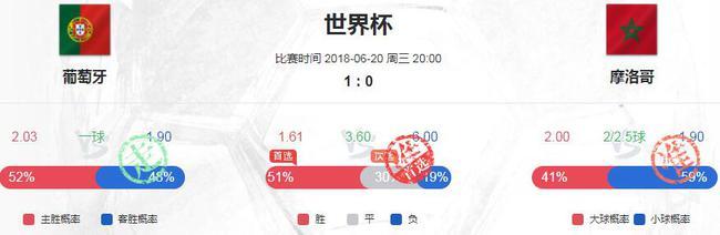 比如早场葡萄牙对阵摩洛哥,小炮不但计算出葡萄牙赢球,大小球预测也命中了结果,盘口预测则是走盘,全方位剧透本场比分——1-0或2-0 !