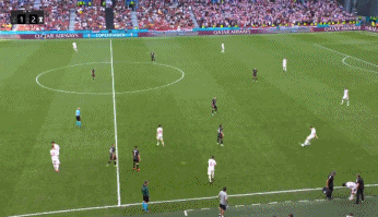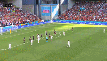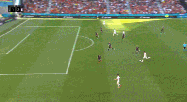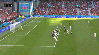 第100分钟,西班牙右侧起球送禁区,防守球员没有顶到位,莫拉塔停球下来起左脚爆射近角破门。西班牙队再次领先。
