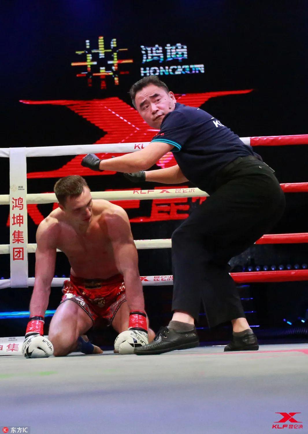 但安德雷从来也不是昆仑决擂台上的“善茬”,他身高2米,被誉为东欧第一猛男,在2016年获得昆仑决100KG➕世界冠军,收获了大批粉丝,实力不容小觑。而当比赛进入到第三回合,安德雷的顶膝也开始变得多了起来,而后更是利用连续的拳法进攻,将菲利普逼至角落,致使裁判读秒菲利普。
