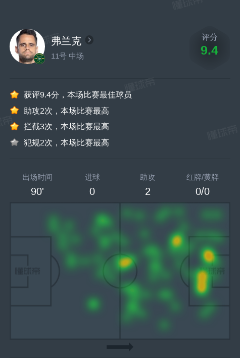 北京时间8月3日浙江vs青岛海牛,弗兰克2助攻,7次关键传球,7次射门,3次成功过人。