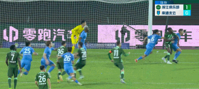 第13分钟,钱杰给角球助攻,弗兰克插上头槌破门,浙江1-0!