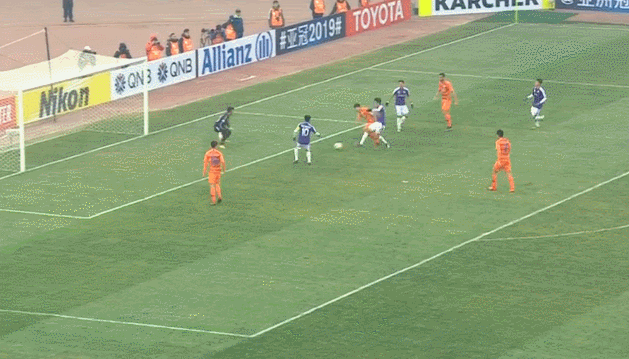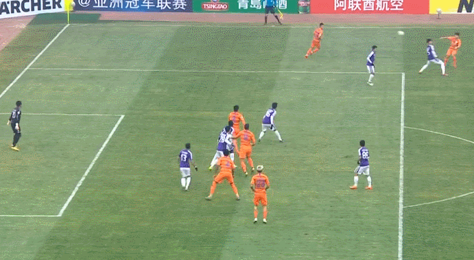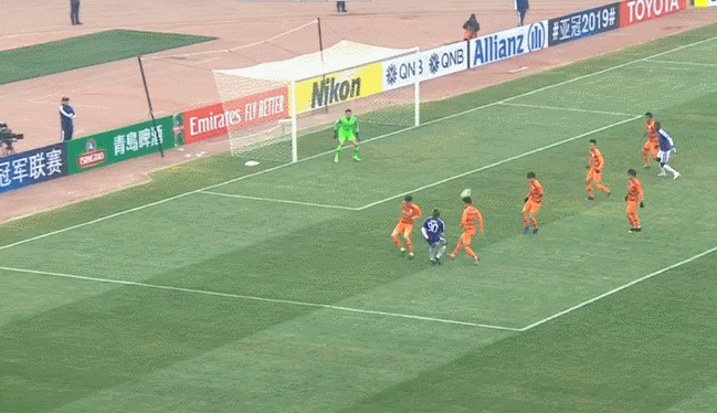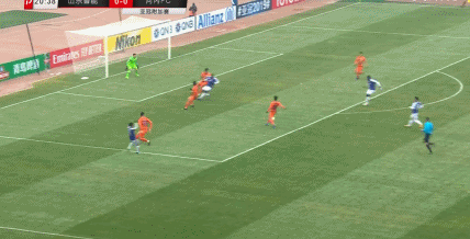 第72分钟,鲁能前场围攻对手,金敬道右边路接队友分球随即起左脚传中,包抄到门前的佩莱高高跃起抢点头槌攻门破网,鲁能2-1反超比分。