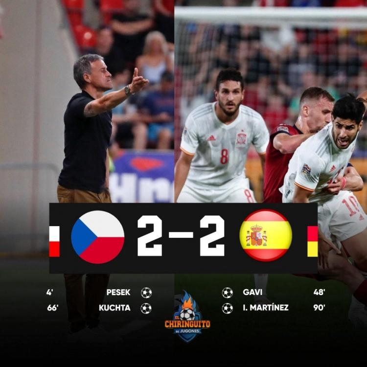 直播吧6月6日讯 北京时间6月6日凌晨2:45,欧国联A2组第2轮,西班牙客场对阵捷克。上半场佩塞克闪击破门,泽莱尼和杨科伤退,加维补时阶段扳平比分;下半场阿森西奥中柱,库什塔破门,伊尼戈-马丁内斯最后时刻头球扳平比分,最终西班牙2-2捷克。
