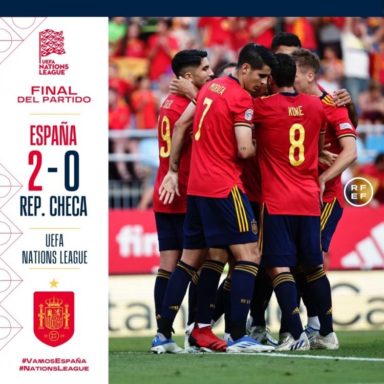 北京时间6月13日凌晨2点45分,2022-23赛季欧洲国家联赛A级第二组第四轮迎来一场焦点战,西班牙队坐镇主场迎战捷克队。上半场,索莱尔打破僵局;下半场,萨拉维亚连场破门。最终,西班牙队2-0战胜捷克队,4轮比赛2胜2平积8分升至本组头名。