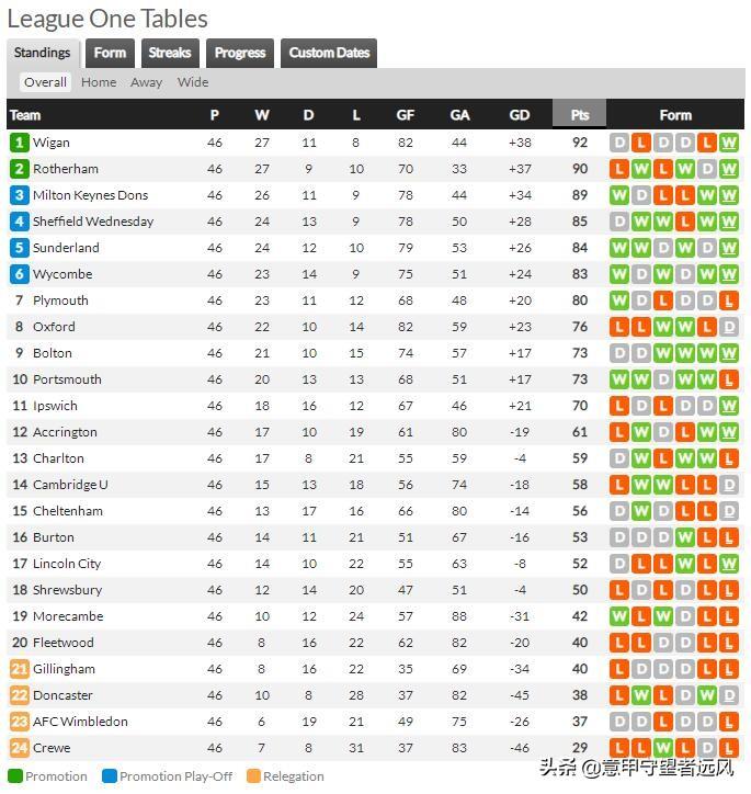 维甘竞技本来以较大优势领先,但此前5轮保持不胜,硬生生让罗瑟汉姆将差距缩小到两分,领先第三的米尔顿凯恩斯也只有3分,但最后一轮,该队客场3球完胜什鲁斯伯里城,曼联旧将威尔-基恩梅开二度。维甘竞技以27胜11平8负的战绩拿到联赛冠军,排名从上赛季的第20一举跃升至第一,这样的飞跃确实令人惊讶,他们时隔两个赛季回到英冠。