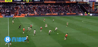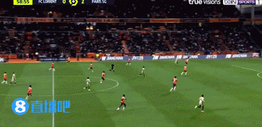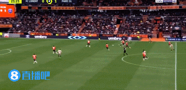 第73分钟,洛里昂反击提速!右路转到左路,左路向禁区斜向传中!邦巴向前冲顶破门!皮球飞进近角!洛里昂扳回一球1-3巴黎↓