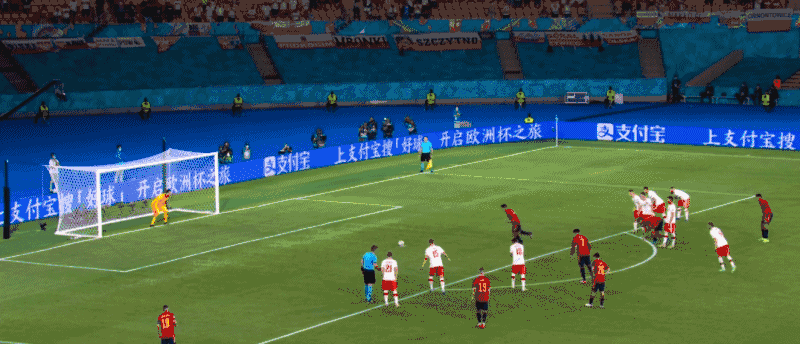 第26分钟,西班牙取得领先,杰拉德-莫雷诺右路内切后一脚低射打向门前,莫拉塔门前推射破门,经过VAR确认没有越位进球有效,西班牙1-0波兰。↓
