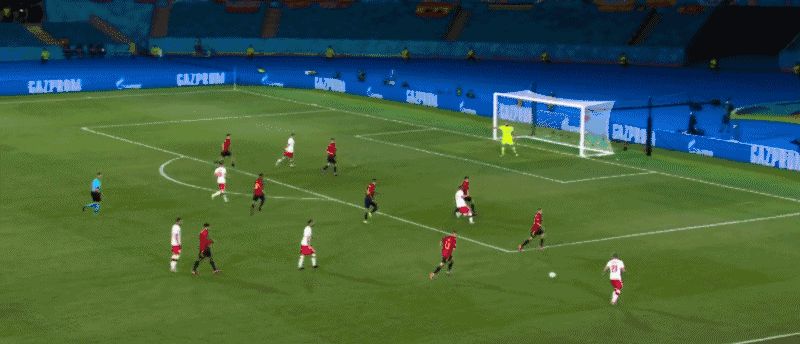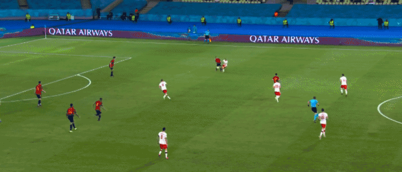 第77分钟,波兰打出反击,莱万分球弗兰科夫斯基,后者拿球后横传被挡出底线。第80分钟,马科斯-略伦特右路传中,佩德里禁区内回做,罗德里跟上抽射被什琴斯尼没收。↓