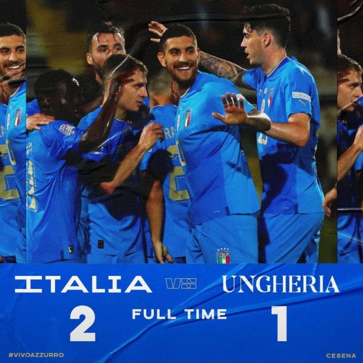 直播吧6月8日讯 北京时间6月8日02:45,欧国联A3组第2轮,意大利对阵匈牙利。上半场比赛,巴雷拉抽射破门,佩莱格里尼推空门得手。半场结束,意大利2-0匈牙利。下半场比赛,曼奇尼乌龙球送礼,此后双方均无建树。最终全场比赛战罢,意大利2-1战胜匈牙利。