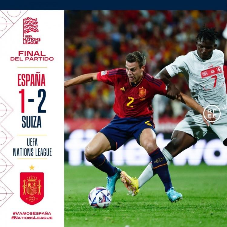 直播吧9月25日讯 北京时间9月25日2:45,欧国联A级别第五轮西班牙迎战瑞士的比赛,上半场阿坎吉头球破门,西班牙机会寥寥,下半场阿尔巴爆射扳平,恩博洛破门,最终,西班牙1-2瑞士。