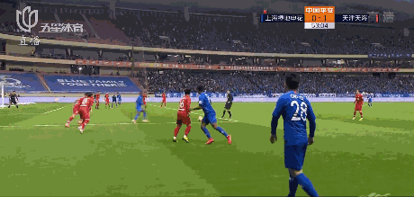 随后双方互有往来,进球后的天津天海打法变得保守,而上海申花有多次进攻得分机会,但是都与进球失之交臂。半场哨响,申花在上半场遭遇到了意外,尽管人数和比分都落后与对手,但是申花逐渐找回状态,有数次好的进攻表现。