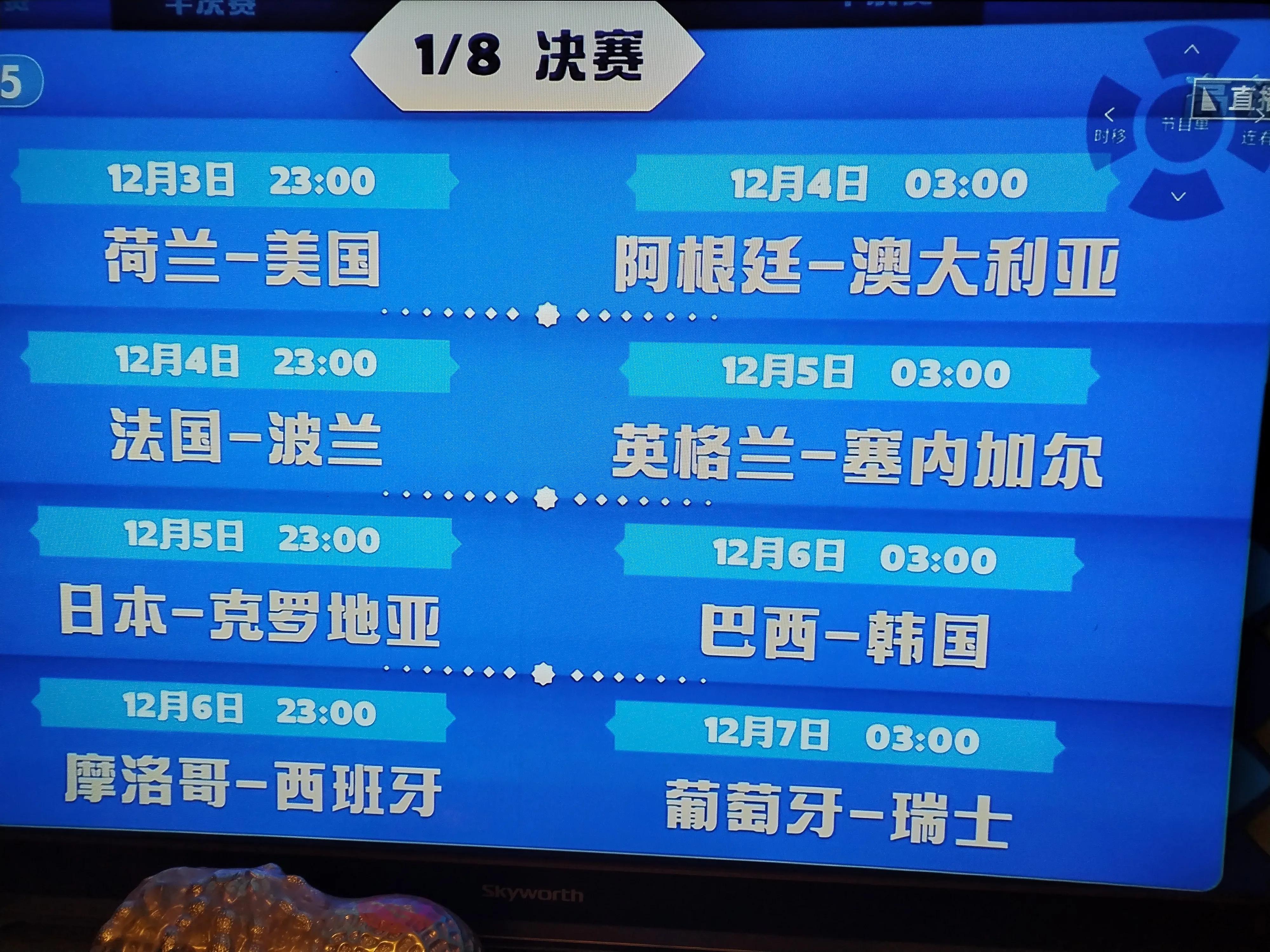 6日凌晨03:00卡塔尔世界杯-1/8决赛(巴西-韩国),CCTV5直播。