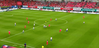 第19分钟,孙兴慜直传,郑优营传中打中迪亚斯后反弹后险些误入自家球门,德保罗将球扑出!