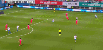 上半场第11分钟,郑优营分球,黄喜灿带球推进之后右脚抽射破门,韩国队1-0领先智利!