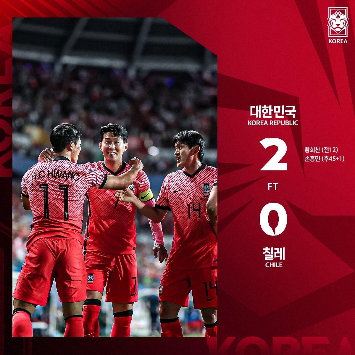 北京时间6月6日19:00,2022年一场国际足球热身赛在首尔展开较量,韩国队迎战智利队。上半场郑优营助攻黄喜灿破门,下半场智利后卫伊瓦卡切累积2黄被红牌罚下,孙兴慜任意球建功,最终韩国队2-0击败智利。