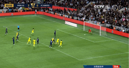 下半场易边再战,第57分钟,大巴黎扩大比分,维拉蒂挑传禁区,,左侧的萨拉维拉飞身铲射,拉冯将球扑出,门前的拉莫斯跑过了,不过他马上脚后跟打空门得手,巴黎3-0领先南特。