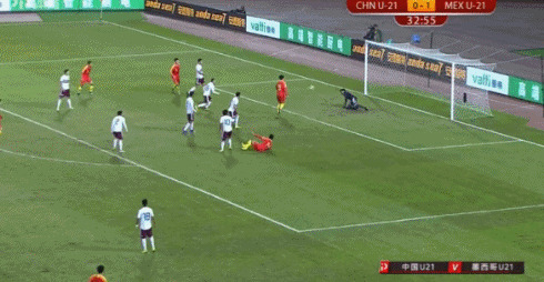 第33分钟,姚道刚将右路的任意球送到禁区,林良铭的头球攻门造成墨西哥门将脱手,刘若钒补射空门得手,中国队扳平比分,1-1。