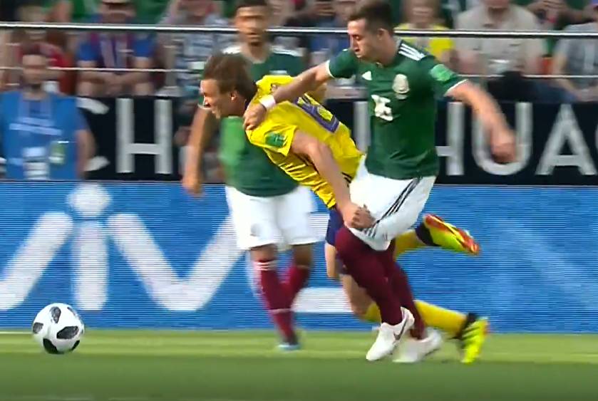 第16分钟,墨西哥反击中洛萨诺得球,右侧跟上的贝拉兜射稍稍偏出。第28分钟,瑞典再获前场机会,禁区内埃尔南德斯有手球嫌疑。经过VAR判罚后,裁判认为这不是个点球。