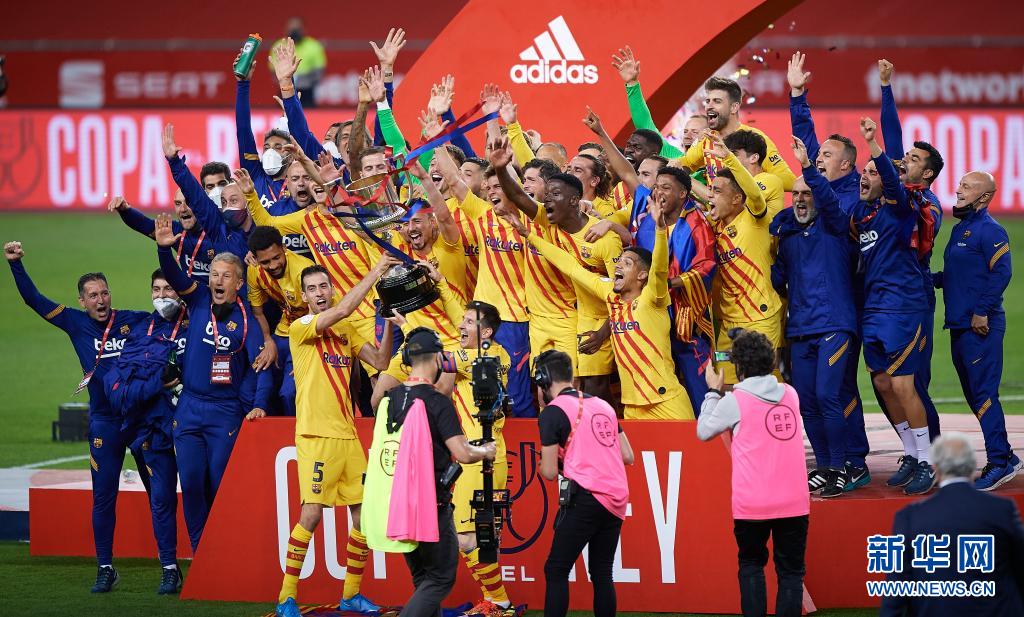 当日,在西班牙塞维利亚进行的2020-2021赛季国王杯决赛中,巴塞罗那队以4比0击败毕尔巴鄂竞技队,夺得冠军。