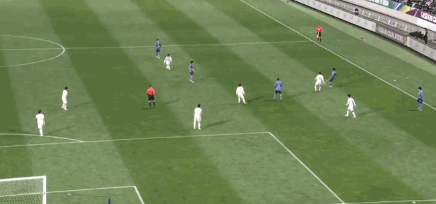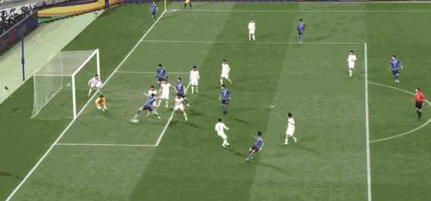 第17分钟,柴崎岳头球传递给三笘薫,三笘薫插上带球斜传禁区内的久保建英,久保建英接球后回传队友,原口元气打门遗憾踢偏。