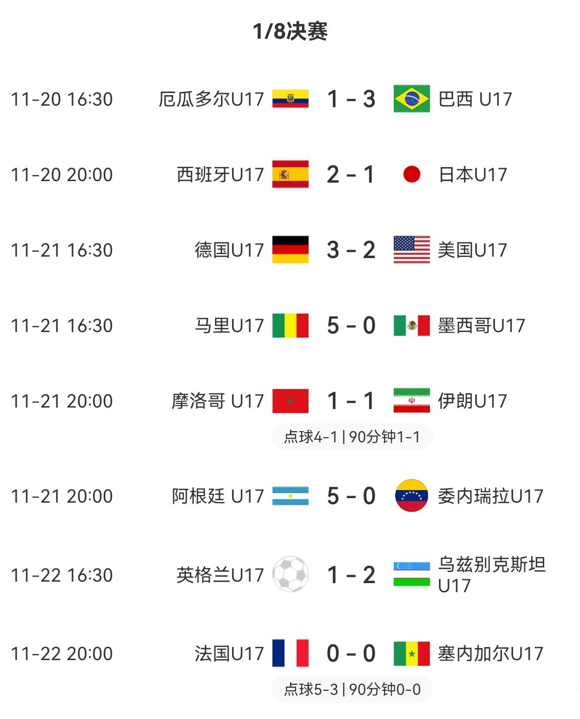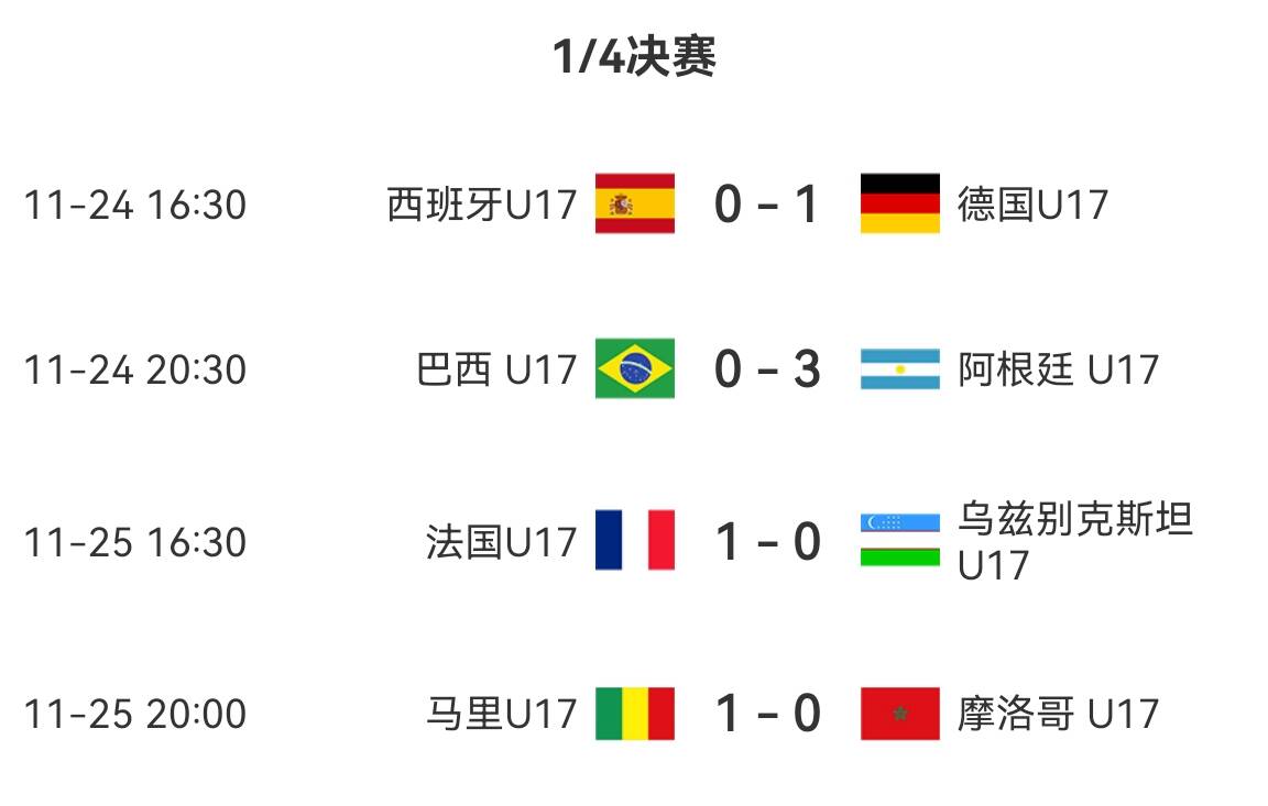 北京时间11月25日U17世界杯 1/4决赛 ,马里U17对阵摩洛哥U17。下半场迪亚拉补射打破僵局。最终马里1-0战胜摩洛哥进4强战法国。