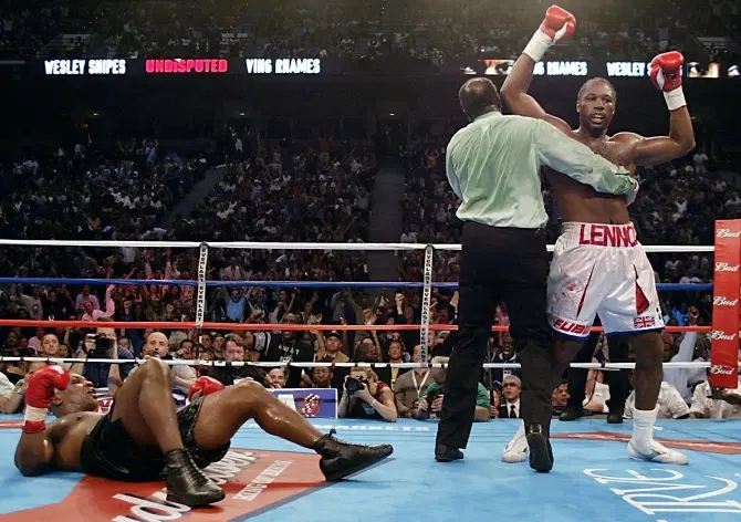 2002年落魄的泰森挑战刘易斯的重量级拳王金腰带,结果八回合被刘易斯TKO,那场比赛让刘易斯名声大噪。