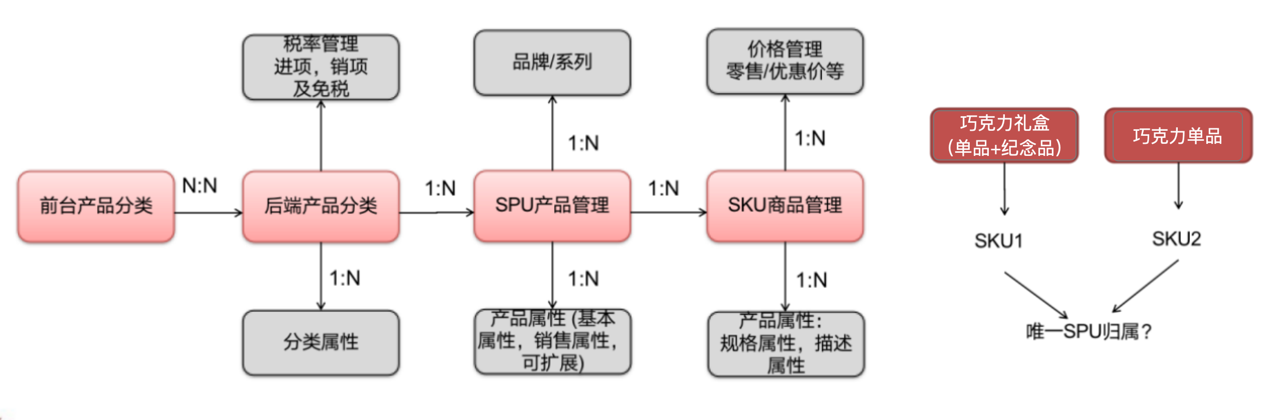 商品管理维度以SKU为主,SPU仅作为辅助管理维度,未将SKU与SPU做对应归属(如91002-01巧克力,未归入对应SPU)。