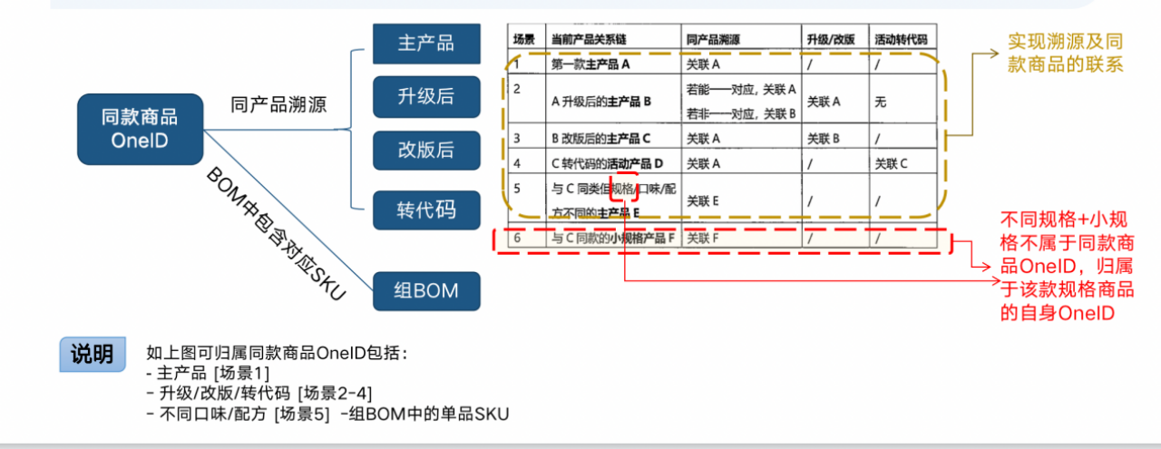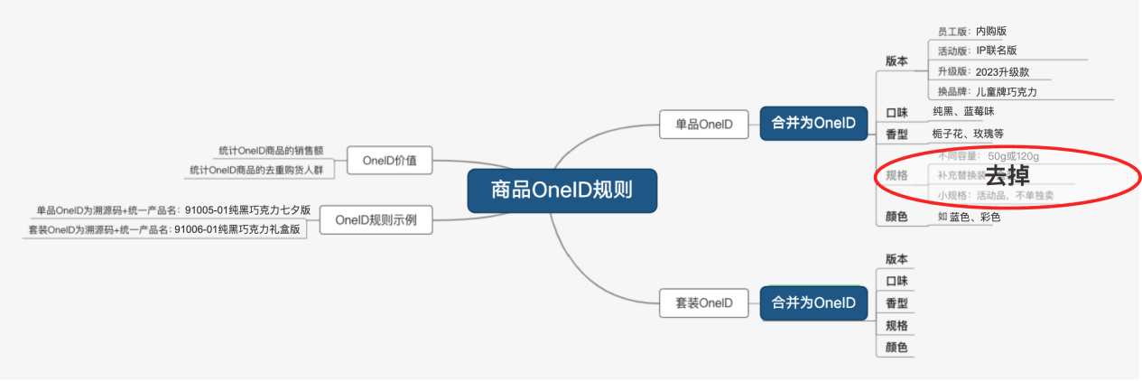 作为独立OneID体系,根据版本/口味/香型/颜色四个大类做OneID归属。