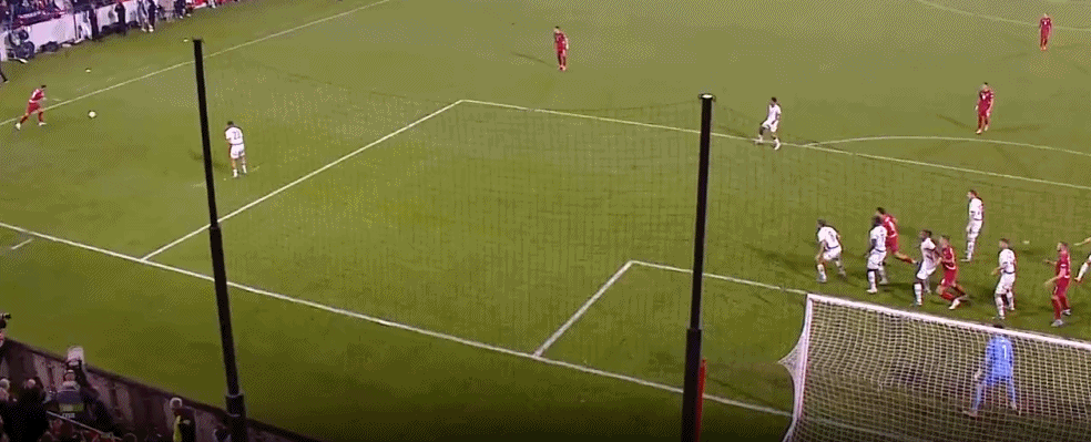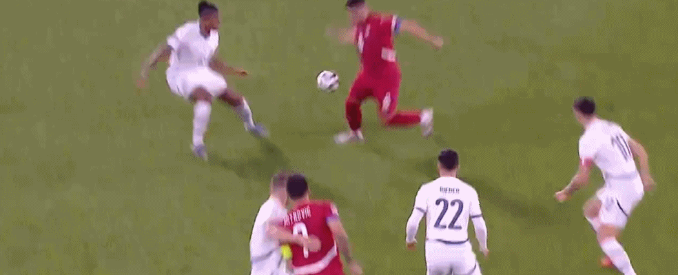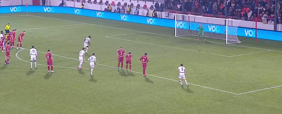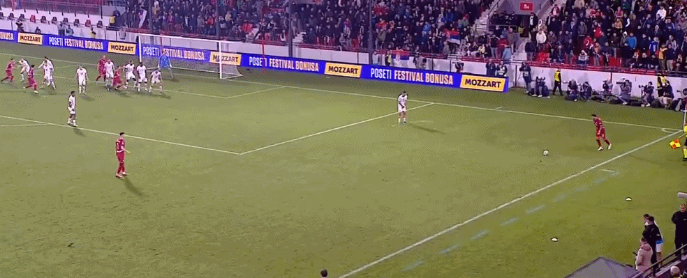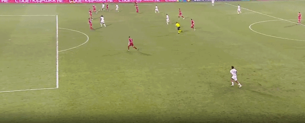 第45+1分钟,塞尔维亚发出右侧定位球,皮球打在埃尔维迪脚上弹进球门