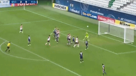 第64分钟,首尔FC获得右路角球机会,墨尔本门将出击出现失误,黄贤秀近距离头球顶入空门,首尔扳回1球,1-2。
