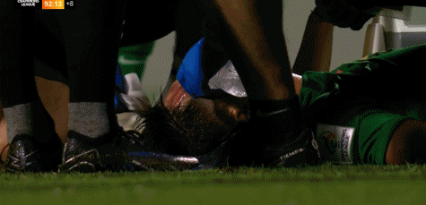 第3分钟,穆谢奎开场拼抢倒地后出现受伤状况,好在问题不大