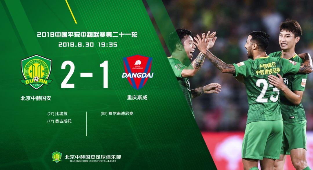 2018年8月30日,2018中国平安中超联赛第21轮,北京中赫国安回到工人体育场对阵重庆斯威。比埃拉上半时首开纪录,奥古斯托下半场攻入制胜球,最终北京中赫国安主场2-1战胜重庆斯威,拿到宝贵的3分。
