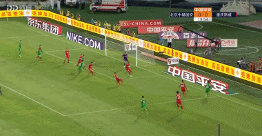 第20分钟,中赫国安开出战术角球,张稀哲和比埃拉配合后下底回传造成重庆禁区内混乱,球先是击中立柱随后张瑀的补射又打中横梁弹出。
