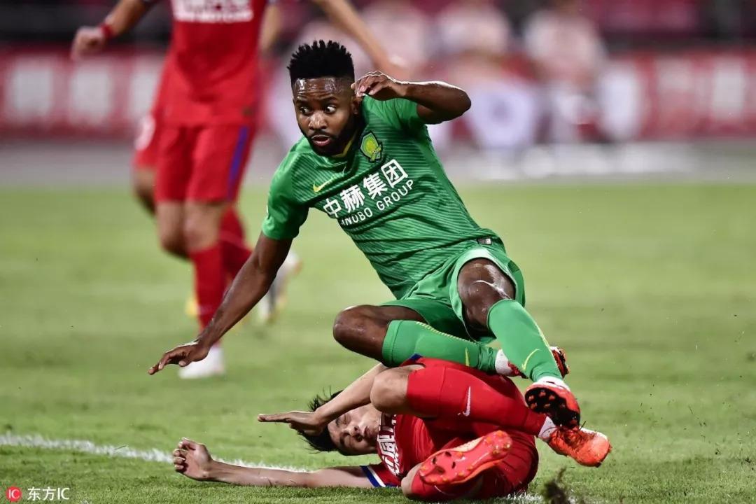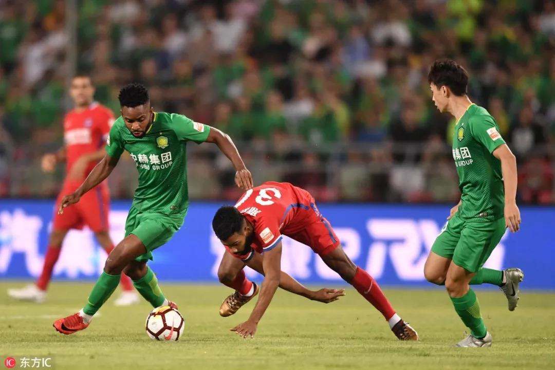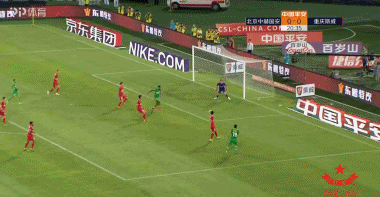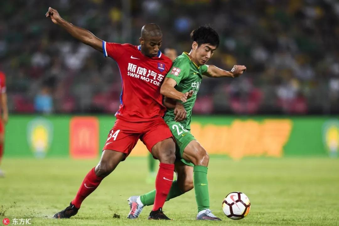 比赛开始仅6分钟,中赫国安就在对方门前制造杀机。奥古斯托开出角球,张瑀禁区内不停球直接凌空抽射,可惜巴坎布站在射门线路上来不及闪躲把球挡出,中赫国安错过领先良机。